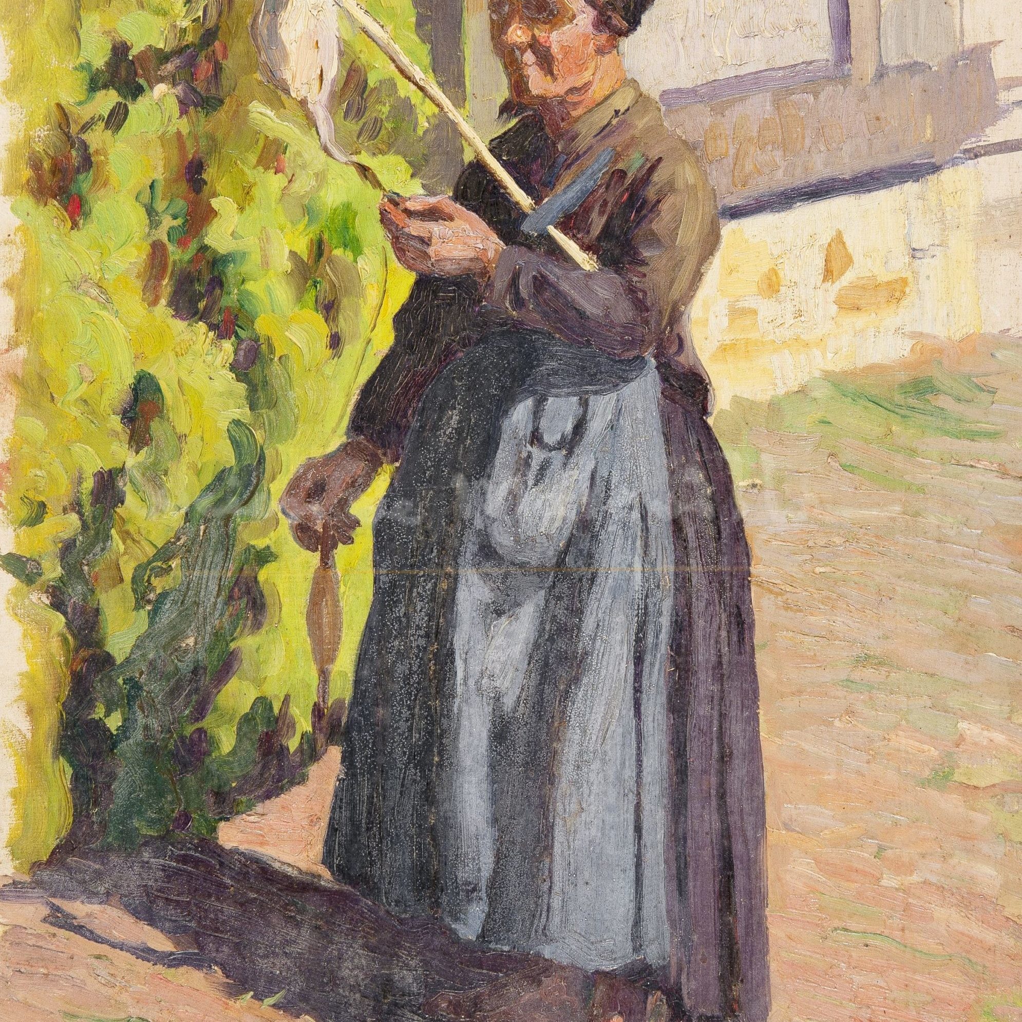 La fileuse, huile sur panneau, 41 x 33 cm, août 1908, non signée. n° au catalogue raisonné : 8.1-01. Mention manuscrite au verso « août 08 ». Crédit : Association Lucien de Maleville.