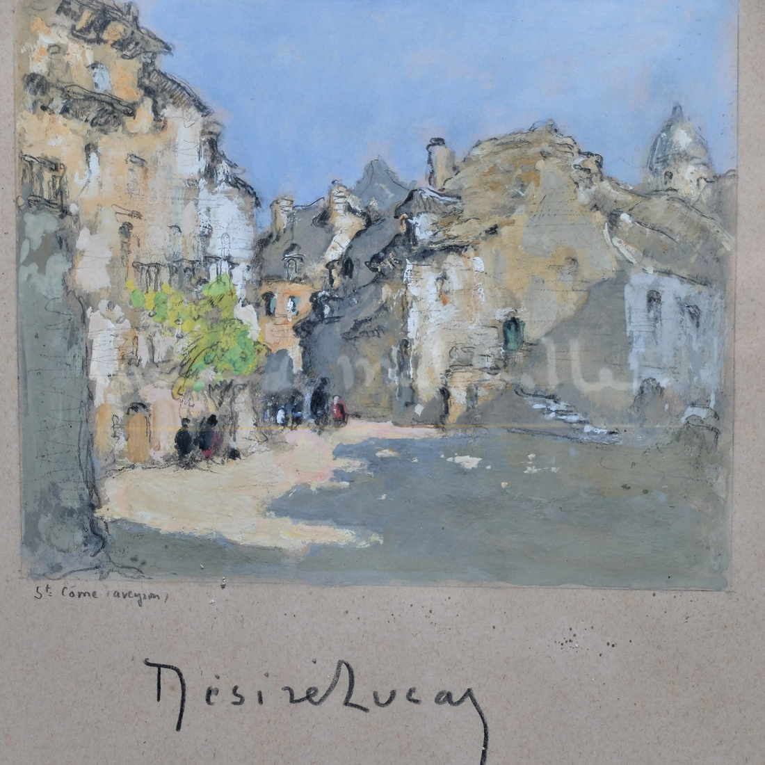 Louis-Marie Désiré-Lucas (1869-1949) : Saint-Côme en Aveyron, technique mixte sur papier, 13x 16 cm.